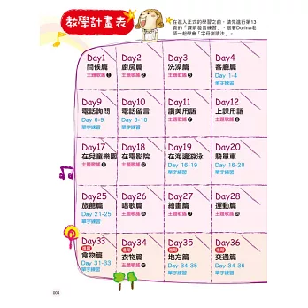 為了體恤媽媽們的辛勞,本書特別規劃40天教學計畫表(請參考p.004-005),30天初階學習計劃+10天進階主題訓練,照表操課,讓學習更有效率。