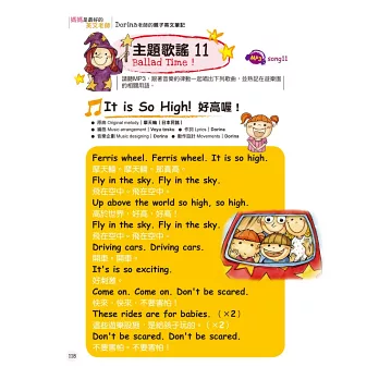 全書共收錄21首主題歌曲,搭配每個單元學習重點,和孩子一起跟著輕快的旋律,碰碰跳跳用「唱」的學習英文。