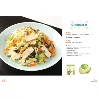 ★近年來,飲食講究環保與健康,黎華的《蔬食好料理》食譜出版,更具意義。書中許多蔬菜的組合搭配極有巧思,像:涼拌梅乾苦瓜、橄欖菜炒銀芽、南瓜燴高麗菜等,在作者的創意下,吃起來都感到美味、爽口。多吃蔬食,好處多,建議不妨照著本書,在家輕鬆學做菜,你也能嘗到創意好味道!
