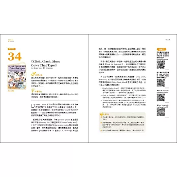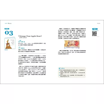 全書依難易程度排列,列在前面的第一、二級別的繪本,內容較簡單;排在後面的第四、五級書目,難度會逐步提高。若能按順序來閱讀是最好的,但若孩子對某本書主題毫無興趣,那麼跳過直接閱讀下一本有興趣的故事主題也無妨。同時,作者也精挑朗讀品質具一定水準的網路影音資源,幫助家長善用Youtube,直接向母語人士的精采朗讀取經。