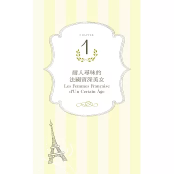 從法國女人身上吸取智慧,享受身為女性的一切,大膽擁有充實趣味的人生。妳,就是一個Forever Chic的女人。