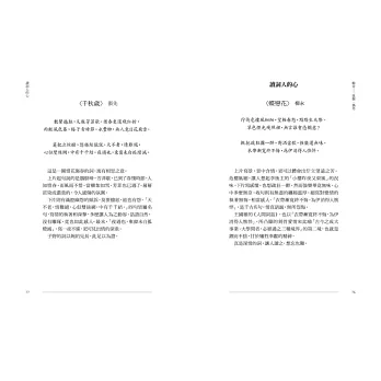 全書精選宋詞經典詞作,包含歐陽修、蘇軾、李清照、辛棄疾、晏殊、秦觀、李元膺、陳克、蔡伸、吳文英、張先等二十餘名詞人,共四十闋詞作。每位詞人介紹中,延伸推薦兩首詞作,拓展你的詞學眼界。