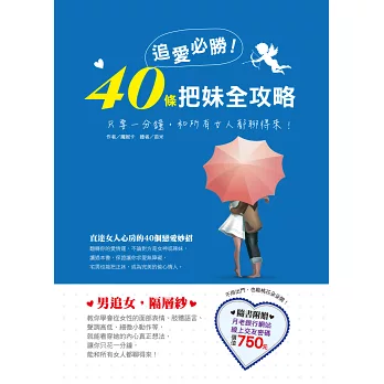好女孩並不難追,只要用對方法展現自己的真心,讓她看見你的優點,就算是宅男也可以把到正妹。本書提供40個追女的妙招,告訴男性朋友們如何玩贏這場戀愛心理遊戲,把自己打造成女人眼中的型男。