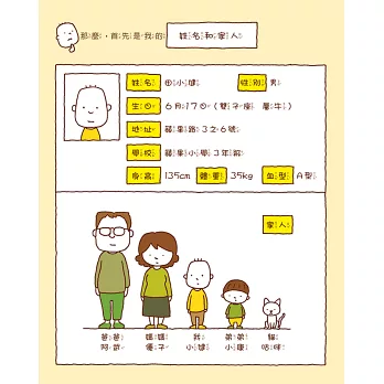 「我叫田小健,性別男,我每天早上頭髮都會翹起來,一興奮鼻孔就會撐大......我是媽媽調皮的大兒子,