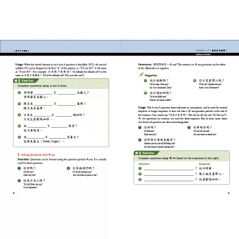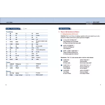 The field of L2 Chinese in Taiwan seems to have adopted the world-famous 'one child policy'. The complete set of currently used textbooks was born a generation ago, and until now has been without predecessor. We are happy to fill this vacancy, and with the title ‘number two’, yet we also aspire to have it be number two in name alone. After a generation, we present a slightly disciplined contemporary language as observed in Taiwan, we employ Hanyu Pinyin without having to justify it cautiously and timidly, we are proud to present a brand-new system of Chinese parts of speech that will hopefully eliminate many instances of error, we have devised two kinds of exercises in our series, one basically structural and the other entirely task-based, each serving its own intended function, and finally we have included in each lesson a special aspect of Chinese culture. Moreover, all this is done in full color, the first time ever in the field of L2 Chinese in Taiwan. The settings for our current series is in Taipei, Taiwan, with events taking place near the National Taiwan Normal University. The six volumes progress from basic colloquial to semi-formal and finally to authentic conversations or narratives. The glossary in vocabulary and grammar is in basically semi-literal English, not free translation, as we wish to guide the readers/learners along the Chinese 'ways of thinking', but rest assured that no pidgin English has been used.