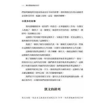 這本書有個特別私密的部分,是討論伯特與整個學習主體進行工作的情形,包括年輕的學生,他們的家庭,老師和校長。特別要注意由於某些原因而生命有分裂或受干擾的孩子,以及被收養,或是寄養家庭和育幼院。
