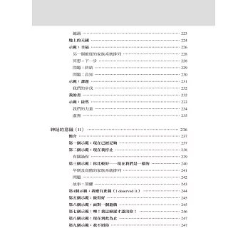 在這本書的最後,伯特稱為「神秘的意識」(Mystic Consciousness),他回到我們生命中所持續遭遇的基本課題:關係、成功、成長、焦慮、失去……。伯特.海寧格真實地面對自己,無所畏懼地走上朝向地平線的道路,他對每個渴望同行的人張開雙臂。