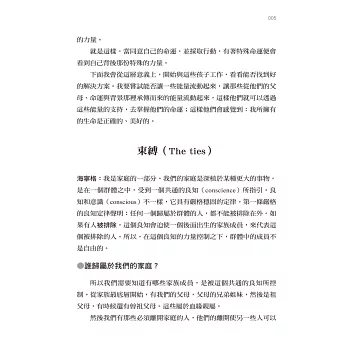 我自1998年初識伯特.海寧格,完成了他第一部原著的英文出版,《家族星座治療-海寧格的系統心理療法》(Love's Hidden Symmetry: What Makes Love Working Relationships)。這本書的共同著作者是亨特.博蒙特(Hunter Beaumont)和根達.韋伯(Gunthard Weber),此書略微道出伯特.海寧格開始探索的事物。我經常說起當我參與這件工作一年之後的事物:直到我參加海寧格工作坊之前,我還自以為瞭解所有海寧格的觀點和目的。