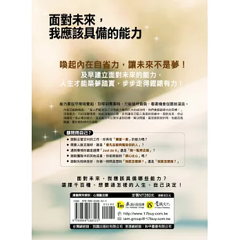 想要變成世界化的人才,就不要忽視內心的渴望,問問自己,有什麼難以取代的能力?優點在哪裡?及早建立面對未來的能力,喚起內在自省力,讓未來不是夢!人生才能築夢踏實,步步走得鏗鏘有力!