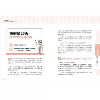 有些眉角你不能不知,從內行人不願透露的術前怎麼挑診所、選醫師、哪些關鍵問題可以有效減少術中風險;以及醫師來不及說明的術後保養。毫無遺漏、一次解決你對醫美的所有疑問!