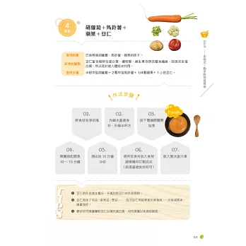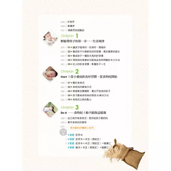 我是一位新手媽媽,對副食品一知半解的我,在兒子5個多月時求助於晴媽咪,當時得到立即的解答與幫助,她不藏私地教導我如何循序漸進地準備與製作副食品。現在孩子3歲,從小就有好胃口,沒有便祕的問題,也不挑食。我一直相信這都是因為一開始對副食品有了正確的認知和作法,才能在小孩的飲食過程裡達到事半功倍的效果。 ─Aya媽咪