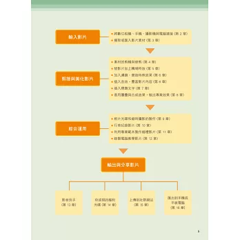 本書利用會聲會影 X8 做為剪輯工具,從影片的擷取、匯入電腦開始,帶您從無到有、將一段段影片處理得更活潑、有趣、專業,並靈活運用會聲會影 X8 新增的各項工具,簡化編輯繁雜的操作。在內容安排上,我們將各種影片剪輯的需求分門別類整理成不同的 9 個範例,範例中融入會聲會影的各項功能操作,您可以從中找到符合自己影片素材類型的編輯範本,輕鬆完成影片的編輯工作,也可以透過範例來學習會聲會影,更能掌握每項功能的使用時機。