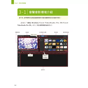 本書將教你把拍攝好的影片傳到電腦中, 並用會聲會影 X8 來編輯影片, 透過案例式剪輯教學, 讓畫面變得更加專業且生動活潑又有趣。