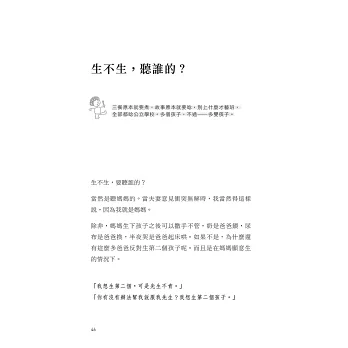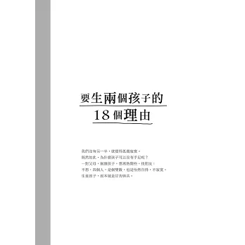 也是因為看完了這本書,讓原先抱著只生一個想法的我,開始動搖了起來。