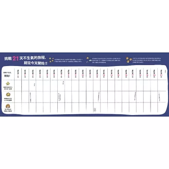 特色1:書衣背面附挑戰21天不生氣「心情記錄表」,可貼於冰箱或每日必經之處,提醒每日預留寵愛自己時間,並每晚為自己的情緒把脈。