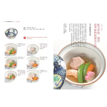 共收錄200道日本料理,實例最豐富,自學與參考價值皆高。依據各種菜色編排分類,翻查參考快速省力,馬上就能找到你需要的擺盤案例。