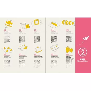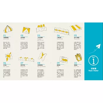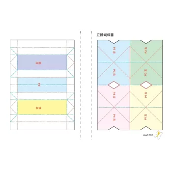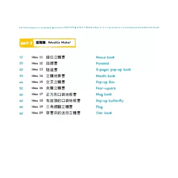 《一張紙做立體書》為讀者介紹20種不同形式的「一張紙做書+內頁立體化技巧」,等於學會20款「製書結構+立體技法」。