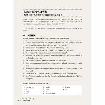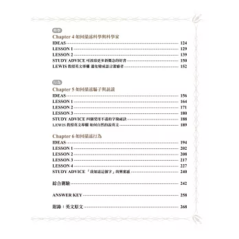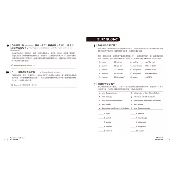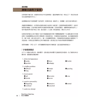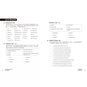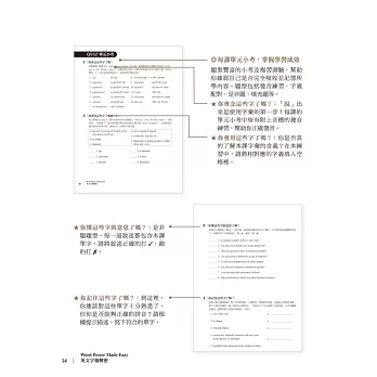 每一單元皆附有發音練習、字源練習等實用測驗題,幫助讀者將單字納入長期記憶中,並隨時掌握學習成效與進度。此外,收錄作者 Norman Lewis 的學習建議,字彙記憶將更有方法和效率。