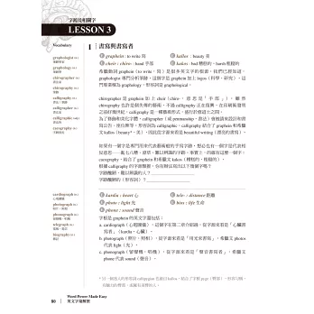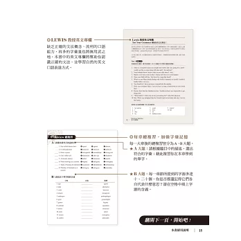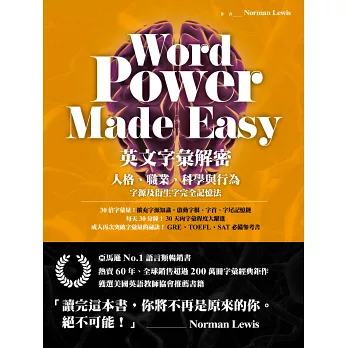 本書作者 Norman Lewis 為英語文法及語源權威,結合其豐富的教學經驗及語言學專業著成本書,以幫助讀者在兩、三個月內迅速且有系統的習得大量字彙、將它們納入長期記憶中,並在口語及寫作中自然的使用。更重要的是,這些字彙將永遠改變你的思考模式,增進個人表達及對世界的理解能力。