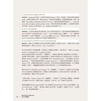 你能夠精準的使用單字嗎?是否可以正確的發音及拼音?你能不能夠避免語病、不犯令人尷尬的文法錯誤?若你對以上任何一個問題的答案是「否」,那麼就應該翻開本書;若你想要更上一層樓、有系統地將字彙量擴充至極限,則更必須閱讀本書。