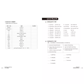 以字根、字首、字尾的方式學習,是大量擴增單字的根本。在「字源與相關字」的課程中,你會學到這十個核心字彙包含哪些希臘或拉丁字根,以及其他有著一樣或相關字根的單字。