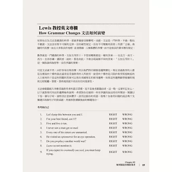 缺乏正確的文法概念、流利的口語能力,再多的字彙量也將無用武之地。本書中的進階教室專欄,將幫助你認識正確的文法、並學習自然的英文口語表達方式。