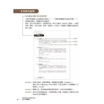 本書的架構建立在兩個基本原則上:一、字彙是概念的字面象徵。二、一旦你熟悉越多概念,就能學會越多字彙。