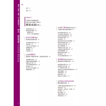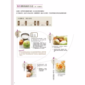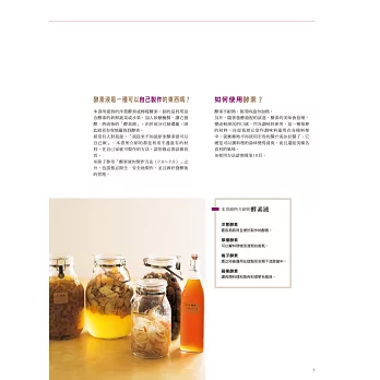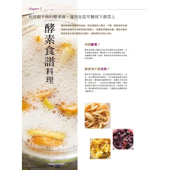 第二章的發酵食譜,所謂「發酵」即是指微生物於發酵過程中,會產生維生素、胺基酸等人體不可或缺的營養素。