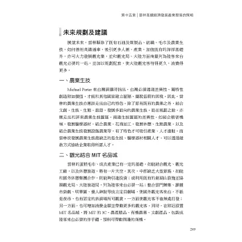 本書彙集社會各專家學者之意見,以公正客觀之立場,研究雲林各種具有發產潛力的產業,包括石化業、製造業、農林漁牧業、綠能產業、銀髮產業、觀光與文創產業與高鐵經濟產業等面向,探討這些潛力產業在受到全球化趨勢影響下,目前的發展現況,以及中央與民間如何透過總體資源之整合,朝向多元化、科技化、國際化之目標發展,藉以促進地方產業升級。