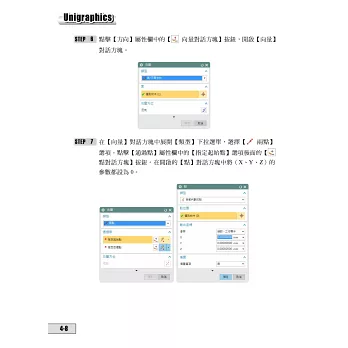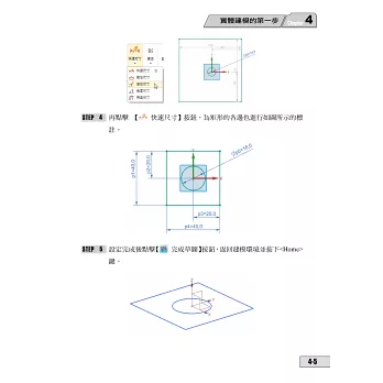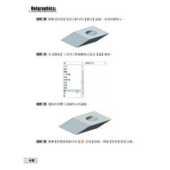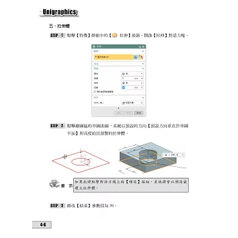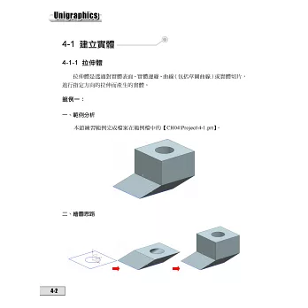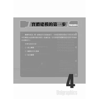 本書精選UG重要基礎操作指令,透過實例引導分別講述UG的基礎應用、拉伸、旋轉、掃掠、基準面、薄殼與肋材、組立件與工程圖等功能。將重要的應用技巧結合到實際教學中,使讀者可以循序漸進、隨學隨用、邊看邊做,便於鞏固所學的知識,在工作與學習中能快速得到實踐經驗。