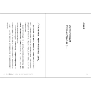 例如:「人生病了,就要看醫生、打針吃藥啊!」聽到這樣的論調時,你認為如何呢?覺得有需要想一想嗎?「生病本來就是這麼回事啊!」如果你也這麼想,那麼就表示你也有「健康危險」了。請你趕快閱讀這本書,就會知道所謂「危險」有多致命!