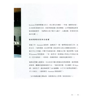 一個家裡擠進兩國人和一段僱傭關係,環境上親密,但心理上陌生。在這個奇異處境中,我們學習跟異鄉人在同一屋簷下朝夕相處,如何不當一名神憎鬼厭的僱主?如何彼此信任?如何設定各自的領域?如何建立作為母親的自信而不必因妒忌而變質?……