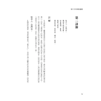 為此,我將力求簡短;雖然在有需要的某些部分,以及談論祈禱的一些論點與效果時,我難免會特意詳加解釋,由於詩節中談及許多這些事,我不能不加以論述。