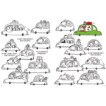 《你來找,我來畫》專為3歲以上的孩子設計的填色遊戲書,每一個豐富的頁面,都會附上簡單的提示,「哪輛車上載有兩隻雪人?」、「聖誕老公公該滑下哪根煙囪,才能成功送達禮物?」、「聖誕樹躲在冰山的哪邊?」、「哪頭麋鹿有著獨特的斑點?」