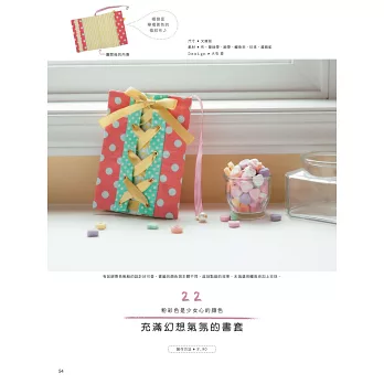 好書不但是我們的良師益友,更是豐富我們生命的甘泉,這麼重要的夥伴,當然要好好地保護它,書套除了可以延長書本的壽命,還可以展現閱讀者的個性,本 書收錄25種風格各異的書套,從海軍風、夢幻風、極簡風、禮服風、信封造型、提包造型、雙面設計、多功口袋等一網打盡,把自己喜歡的做出來,就可以隨時配 合書籍的內容或當下的心情替換使用。