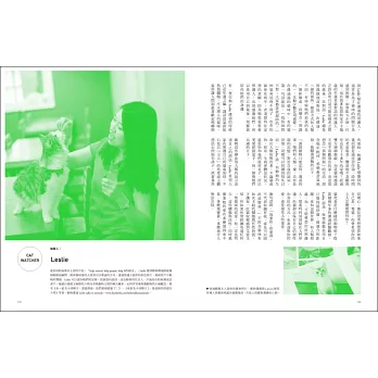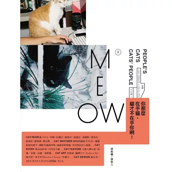 書中探訪知名作家、藝術家、插畫家、演員、歌手、跑者、花藝師、建築師、設計師、媒體人……10個領域的咖——0416、李霽、阮慶岳、姚瑞中、張鐵志、黃麗群、蔡南昇、路嘉欣、歐陽靖、鄭宜農——在他們的家、他們的貓、貓與他們之間,看見這10位CAT PEOPLE 的10種與貓相處之道,當然也有因貓而生的荒唐小事幾則,一窺貓主人與愛貓之間的生活點滴:他們如何相遇、如何共處、如何互相折磨、如何難分難捨。