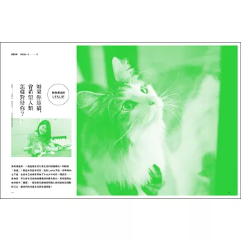 特別規劃「犬貓人劉以豪的一日貓雜談」趣味單元,最天馬行空的企劃,絕不魔幻,絕對寫實。邀請新生代最萌男友劉以豪,實地走訪居家貓、旅館貓、店貓、街貓各個場域,與他遇見的每一隻貓咪聊天,透過動物溝通師LESLIE貓言貓語翻譯,劉以豪最佳拍檔攝影師登曼波掌鏡,除了知道貓咪腦袋中都在想些什麼,也讓我們跟著犬貓人的腳步一起萌。