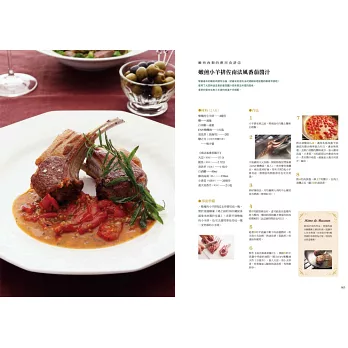 在本書我最想告訴大家的是,法式料理是可以在家輕鬆調理的美味料理,以這個概念,我將在本書介紹像是當地的酒館會提供的,「在法國長期備受喜愛的家庭料理」。只要學會酒館料理的「基本調理方法」,則每個食譜做起來都會很容易。例如:沙拉醬要在調味料混合後少量加入油乳化、嫩煎肉類要用和煎肉時間同樣長的時間醒肉等等,本書也將這些調理技巧,寫成便於記憶的「方程式」。