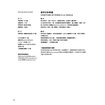 她傳授教導果醬的方式,就像是帶領所有讀者和她共同動手完成一般。不論是包含果肉的果醬confitures、果泥醬marmelades;清澈無果肉 的果凝gelées;可以做為醬汁或冰沙的庫利coulis、果汁jus和糖漿sirops;製作糕點與保存的果漬/糖煮水果compotes、酸甜醬 aigres-doux;適合搭配菜餚的果菜酸甜醬chutneys;或是本身就是一道清爽甜點的水果湯soupes de fruits...。都能照著「果醬女王克莉絲汀.法珀的果醬聖經」,一步一步的成功製作,感受她對美好成品---一罐罐璀璨顏色的果醬,和酸甜水果無條 件的愛!
