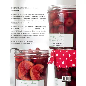 沒嚐過Christine Ferber等於沒吃過果醬!如果您還沒嚐過克莉絲汀的果醬,快翻開書,照著書上的配方,您一定不會失望。