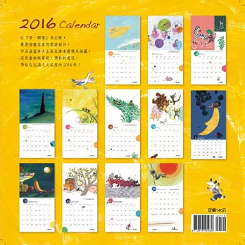 以「愛.關懷」為主題,嚴選插畫名家何雲姿創作,作品涵蓋各大出版社繪本最精采插圖,搭配富哲理的簡練文字,深具童趣與質感,獨特的展現,帶給您充滿人文深度的2016年!