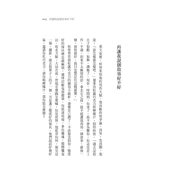 台灣人很會計算,總在尋找投資標的,卻越投越苦,月頭苦月底也苦。現在讓我告訴你一個值得投資的對象,就是這本書。買了,你原本的幾百元就會升值,從哪時候開始升值呢?從你打開第一頁的時候,你每讀一個字,就會覺得你的錢不一樣、變大了,比原本只能吃一頓飯然後在幾個小時後離開身體,來得帶給你更多滿足。而且投資前不必詳閱公開說明書,更不必評估風險,你唯一要擔心的是,你會想把這作者所有的書掃完,因為你會變得貪婪。對故事。