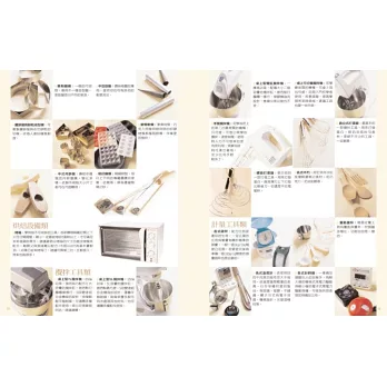 ◆150種烘焙材料&器具專文介紹,圖片加文字徹底介紹,清楚認識每一種烘焙工具,增強新手的專業知識。