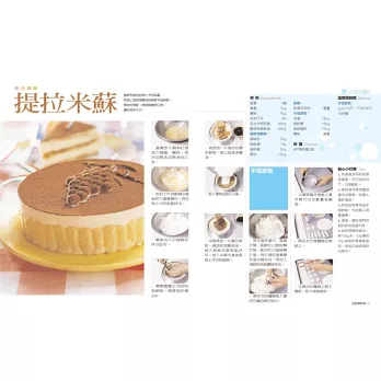 本書包含:〈不失敗法式甜點〉、〈西點類〉、〈蛋糕類〉、〈西點慕斯類〉、〈起司蛋糕類〉、〈中點類〉和〈網路超人氣〉等七大類,每道都有詳細的步驟圖解及貼心小叮嚀,讓讀者一個步驟一個步驟照著做,並有製作上需注意的細節,減少失敗的機率。