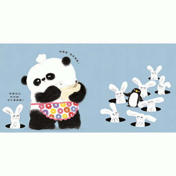 《熊貓先生,我願意等》也有異曲同工。熊貓先生的驚喜的確非常吸引人,但越是美好的事物往往越需要耐心等候,這對於缺乏耐性、總是說要就要的小小孩來說,就像那些不耐等候的羊駝、馬來貘、兔子和鶴的反應一樣,因為掉頭離開而錯失了美好的成果。但作者同樣也安排了一個反差的對應角色小企鵝,這樣的反差同樣產生值得和幼兒討論的因果關係。小企鵝從頭到尾一以貫之的「我願意等」,他的耐心等待是一種品格表現,也是一種謙恭的態度,不僅鼓舞了賣力做點心的熊貓先生,更讓自己最後終能獲得那個出人意表的大驚喜。