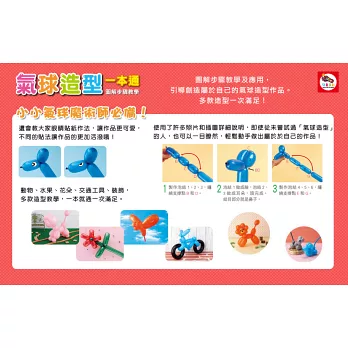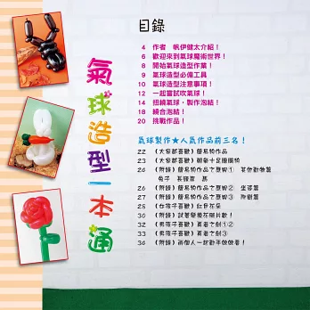 •從工具、打氣、製作泡結、繞合泡結的技巧,到氣球造型,帶你一起挑戰作品。