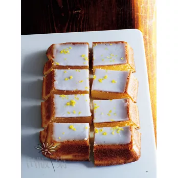 以深度較深的磅蛋糕模型烤蛋糕,可以烤出鬆軟濕潤的口感。但是使用表面積較寬、深度較薄的琺瑯盒烤焙,可以烤出酥脆的新口感,正是琺瑯盒的魅力所在。而且可以縮短烘焙的時間也是額外的收穫。在蛋糕下方墊上厚紙板,將烘焙紙的重疊處朝上包妥,最後以十字型捆上麻繩,串上小標籤與琺瑯盒及食譜一同包裝送出,非常適合當作喬遷或結婚的祝賀禮物。