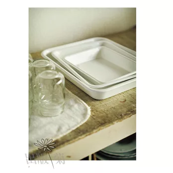 本書中的所有點心,均以21×16.5×3cm的琺瑯盒製作,是一般家庭2〜4人份適合的尺寸。琺瑯盒不僅非常耐熱、導熱性佳,烤箱烘烤沒問題,也可以直接於爐火上使用。除了耐熱以外,不容易沾附味道、抗酸性強,即使是氣味較強烈、使用酸味強的果醬製作點心,都可以保持穩定狀態。