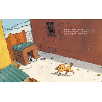 3.總評:本書藉著小瘋狗的故事,傳達了許多的概念或現象,如:愛護動物、旁人不解的快樂、被現實社會磨去真實的自我、永不放棄希望的信念,或是靜靜守護的心情。並非流於說教或批判,而是以溫柔的筆觸隱喻著人生,這是一本大人小孩都適合細讀的繪本──在我們對生活感到無奈時,可以提醒不要失去自己的快樂。