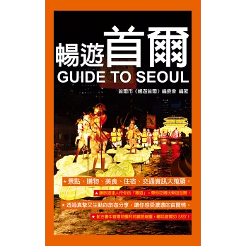 首爾是一個擅長講故事的城市。韓劇中唯美浪漫的故事,歷史中感動人心的故事,現實中充滿人情味的故事,巷弄中蘊含創意的故事……這些故事為本已精緻的首爾增添了靈氣和韻味,將首爾渲染得有血有肉、有聲有色。帶著故事上路的旅程總會充滿驚喜和感動,《暢遊首爾》正是這樣一本有故事的書,滿載著首爾的情和趣,在提供全面詳實的旅行訊息同時,也為大家講述了一個個與首爾有關的故事,講述了部落客們耳聽目睹親歷的首爾故事。可能是清溪川橋上一次做泡菜的驚喜,可能是咖啡店偶遇帥哥的得意,也可能是邂逅一次韓式婚禮的新奇。即使你短期內沒有探訪首爾的打算,也可以展卷一讀,充滿情趣的情節會讓你忍俊不住,部落客們真實鮮活的感受為你呈現深層的首爾萬象。